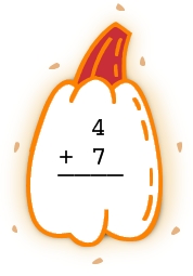 Add the numbers and color the pumpkin with highest sum.